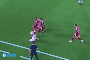 主帅应声倒地!卡塔尔球员边线贴脸大脚,皮球正中洛佩特吉面部