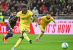 10月19日,AC米兰队球员莱奥在比赛中主罚点球得分。新华社发(阿尔贝托·林格利亚摄)