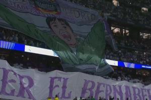 体育资讯10月23日讯 欧冠联赛阶段第3轮,皇马对阵尤文。赛前,皇马球迷巨幅TIFO致敬今夏离队的巴斯克斯。
